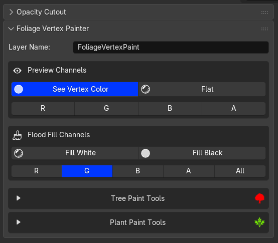 The first section of the plugin is about setting up a layer name for your paint layers, by default it is set to FoliageVertexPaint. You can ofcourse input your name.