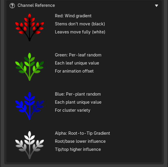 By default the gradient is locked to Red (R) since that's the Tree Sway channel convention. Enabling this lets you redirect the output to G, B, or A if needed.